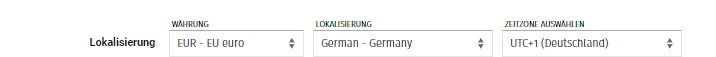 In dem Bereich Lokalisierung kannst Du die Währung sowie die Lokalisierung und Zeitzone einstellen.