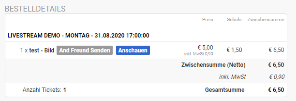 Mit diesem Update haben wir einen "Anschauen" Button auf der Bestellbestätigung integriert, wodurch Deine Kunden einen schnelleren Zugang zum gekauften Livestream- oder On-demand-Video erhält.