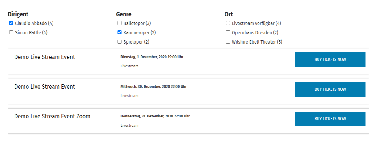 - Veranstaltungsfilter im Shop