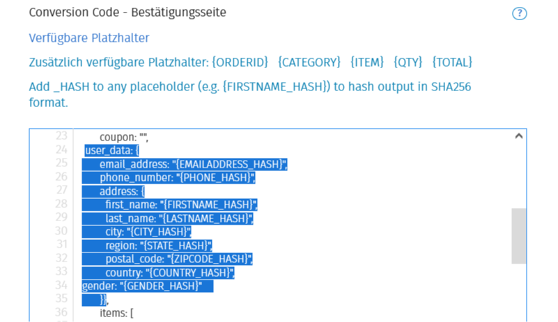 In dem neuen Update haben wir weitere nutzerbezogene Variablen hinzugefügt. Damit kannst Du jetzt auch E-Mail-Adressen, Geschlecht, Anschrift und weitere Informationen auswerten. Die Variablen kannst Du im Eventmanager unter Marketing >> Veranstaltungen >> Marketing in dem Bereich "Tracking Codes" einsehen.