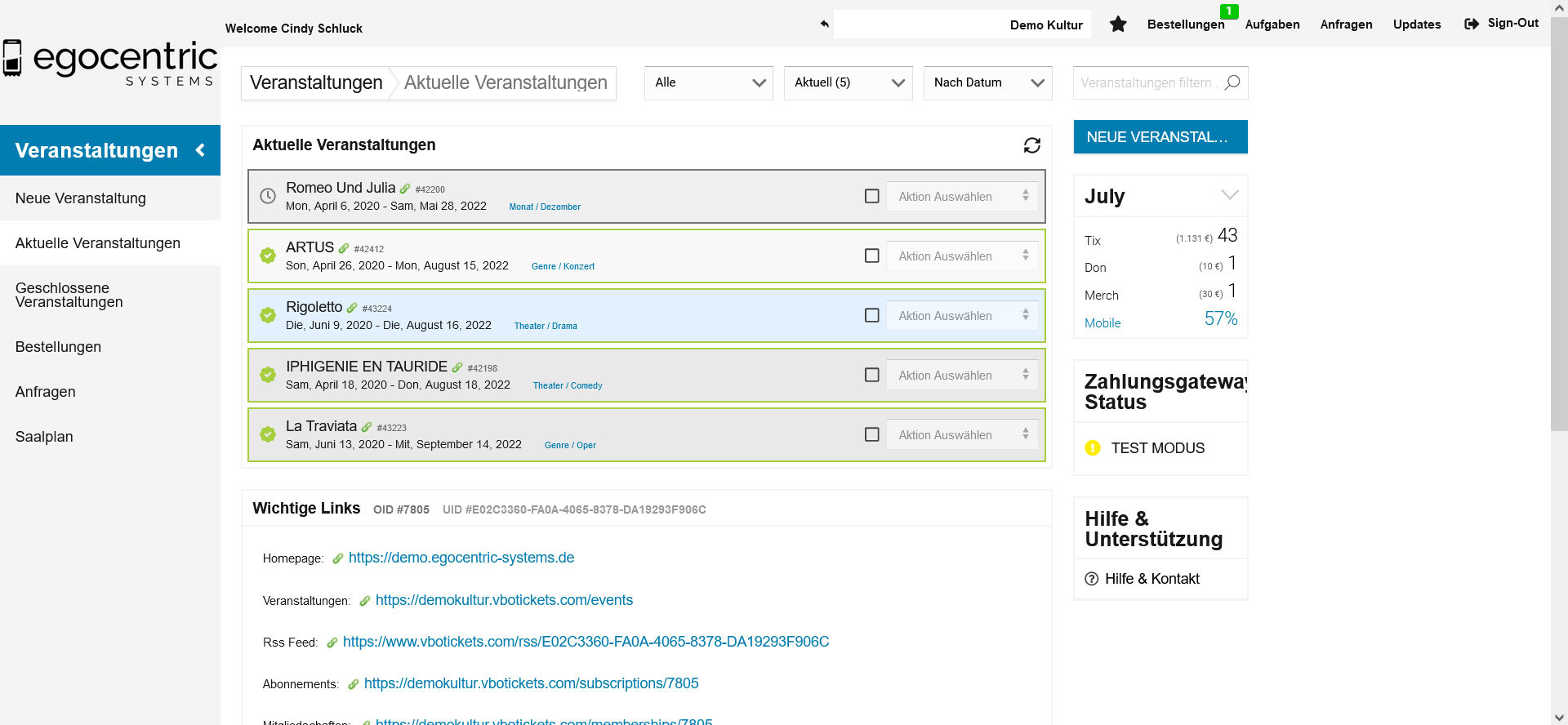 Mehrtagestickets verwaltest Du im Eventmanager unter Veranstaltungen >> Tickets.