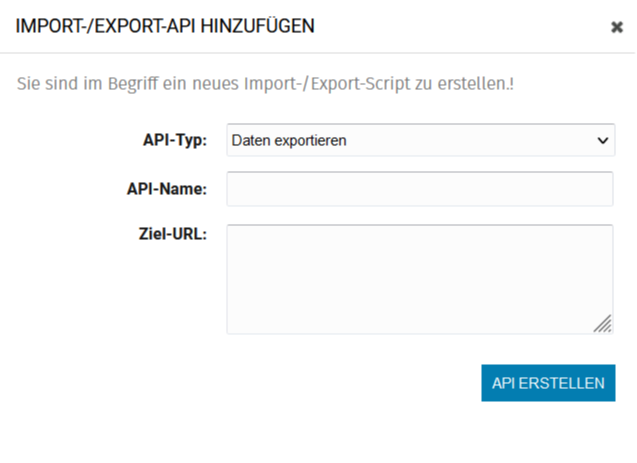 - Im Dropdown API-Typ wählst Du "Daten exportieren" aus.