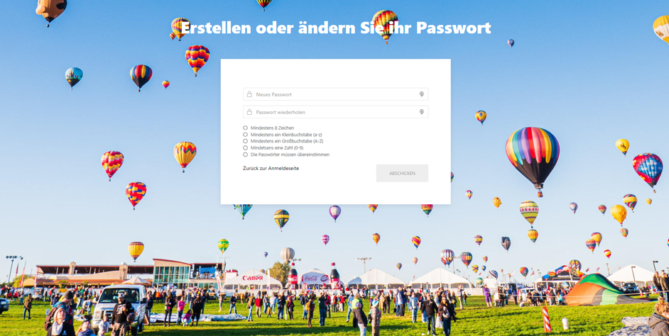 6. Nach der Vergabe des Passworts kannst Du Dich im Eventmanager mit den aktualisierten Login-Daten anmelden.